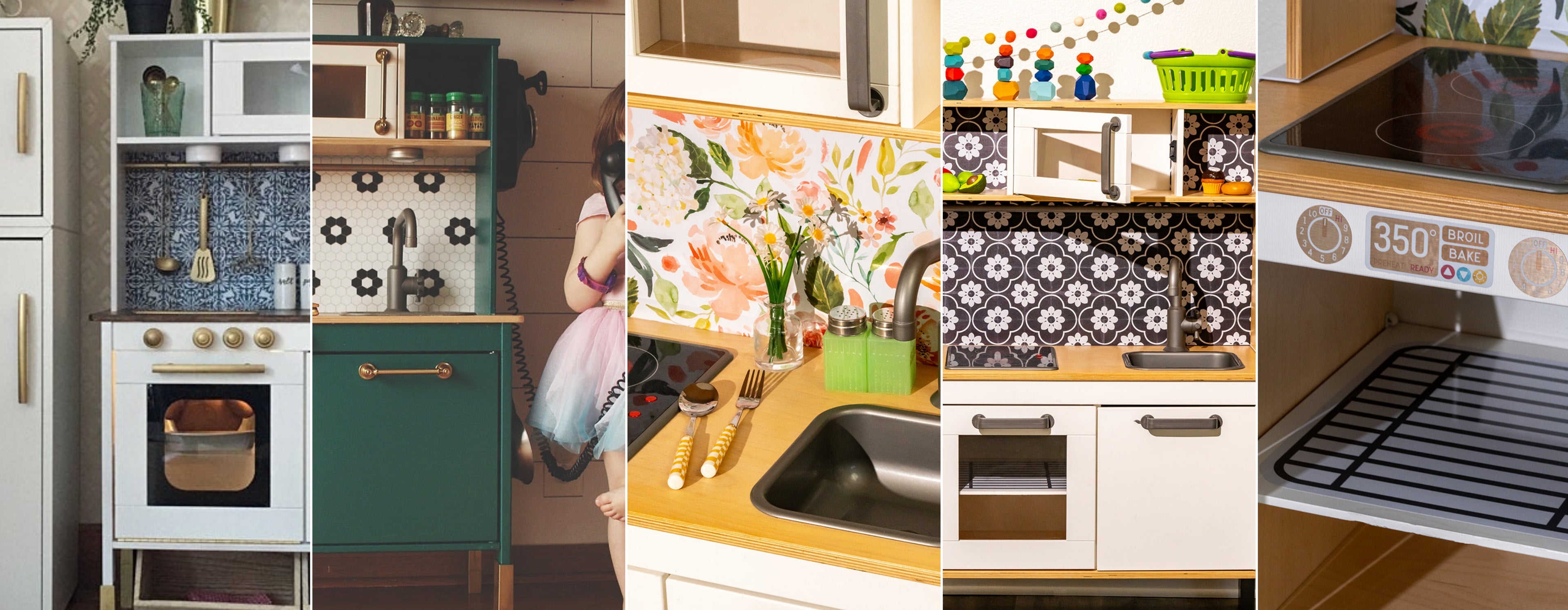 IKEA DUKTIG Play Kitchen Backsplash – Black & Gold Floral Print (Easy DIY Upgrade)